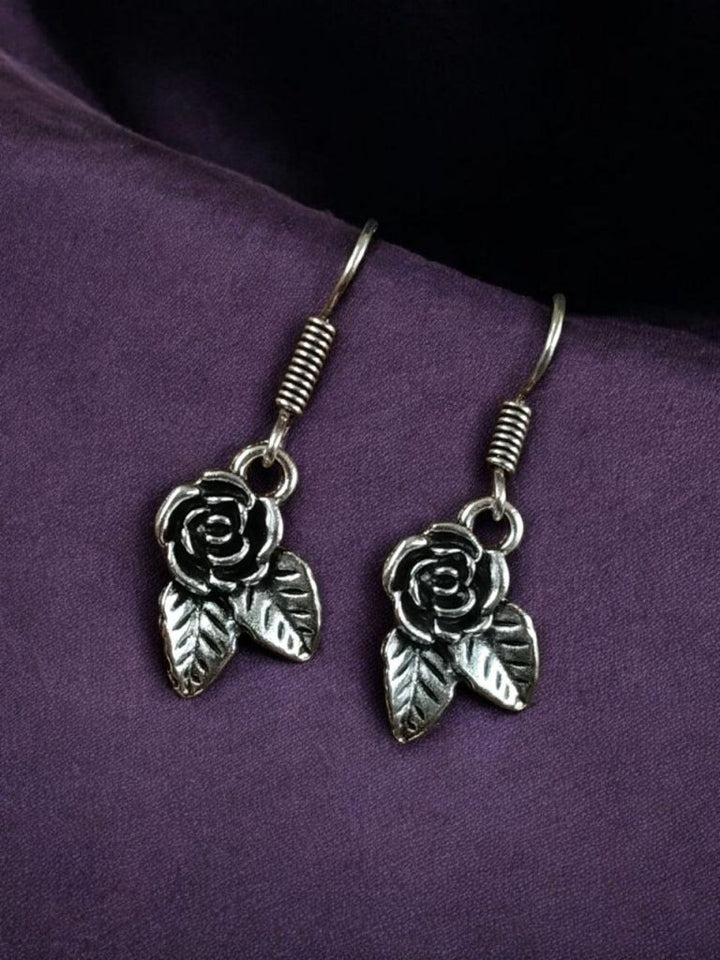 Beautiful German Silver Rose Earrings | Hook Dangler Ethnic Design