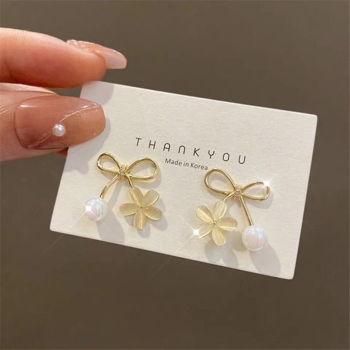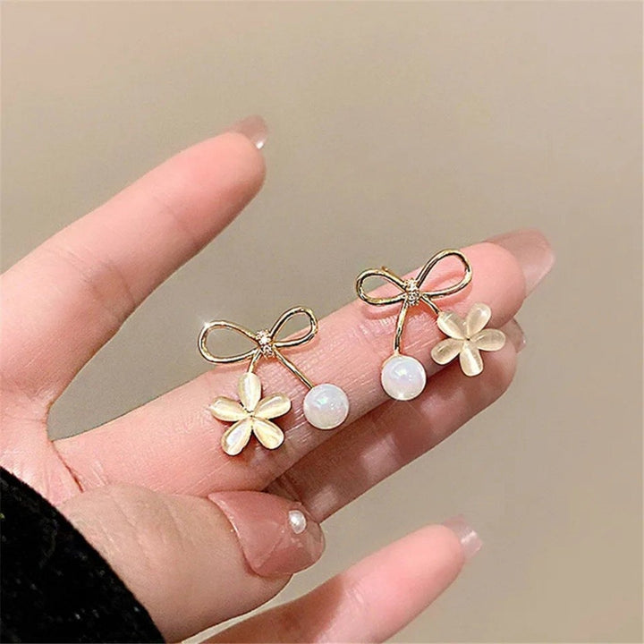 Add a touch of cuteness and charm with our Bloom & Bow Pearl Earrings. Designed in a trendy Korean style, these earrings feature a playful bow, a delicate flower charm, and a lustrous pearl drop that together create the perfect feminine vibe.