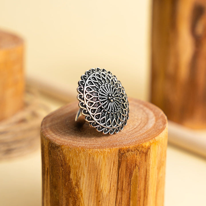 Chakra Shape Oxidised Adjustable Ring
