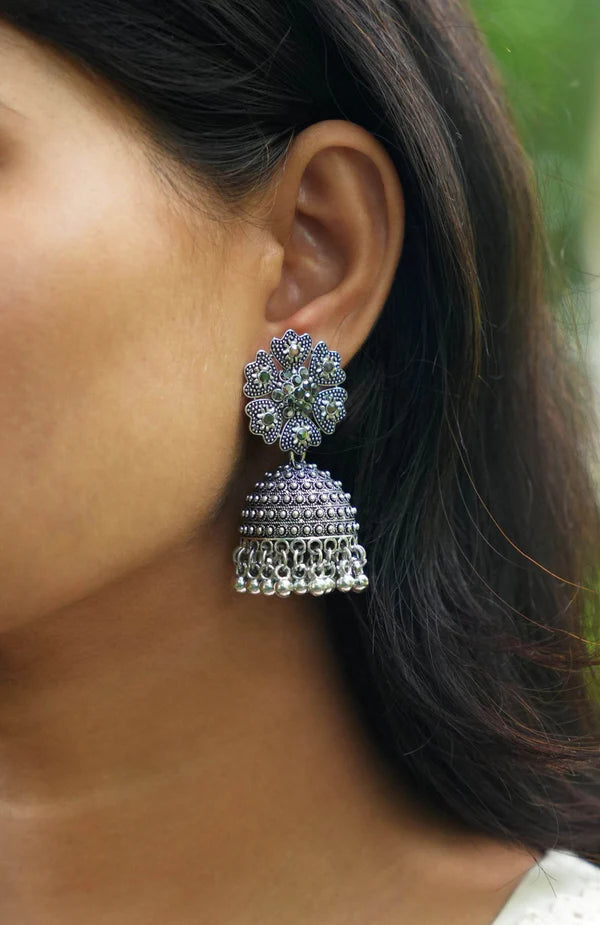 This elegant set includes 12 uniquely designed oxidised jhumkas, each pair symbolizing a moment, a memory, or a mood in your love story. From festive looks to casual outings, these handcrafted pieces add grace and beauty to every occasion.