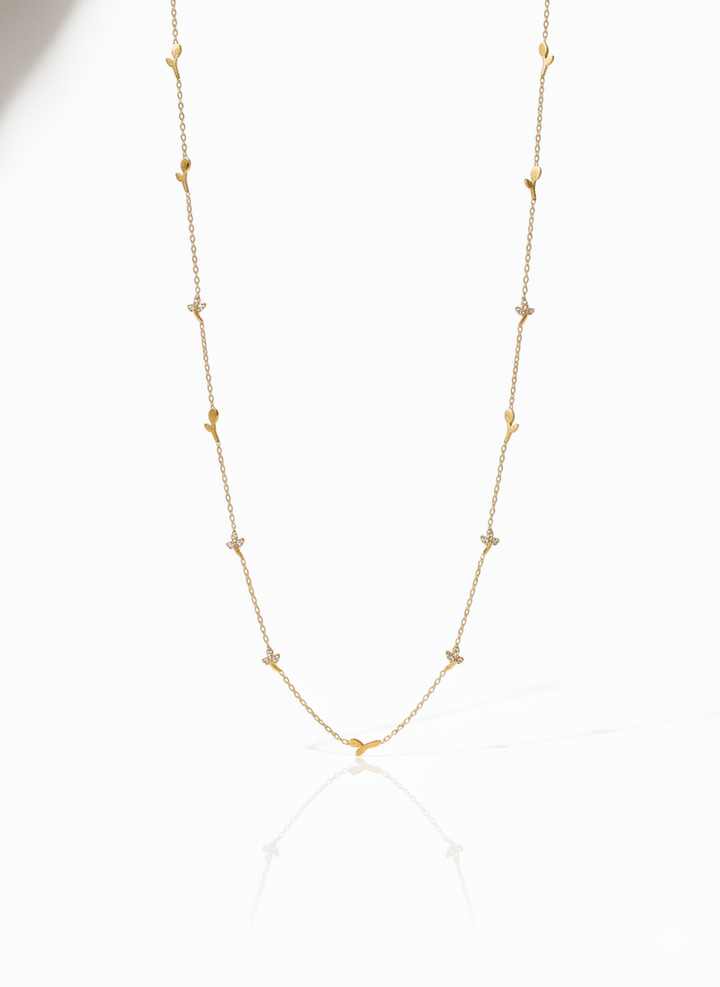 Soft, elegant, and beautifully detailed — the Flutterdrop Necklace brings a touch of whimsical charm to your everyday style. Designed with tiny butterfly-inspired motifs placed along a sleek 18K gold-plated chain, it creates a graceful sparkle with every movement.