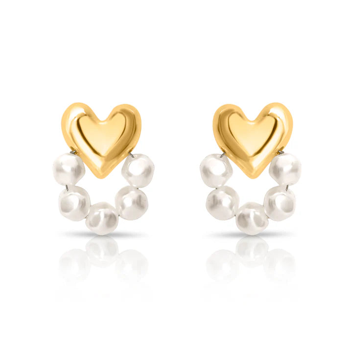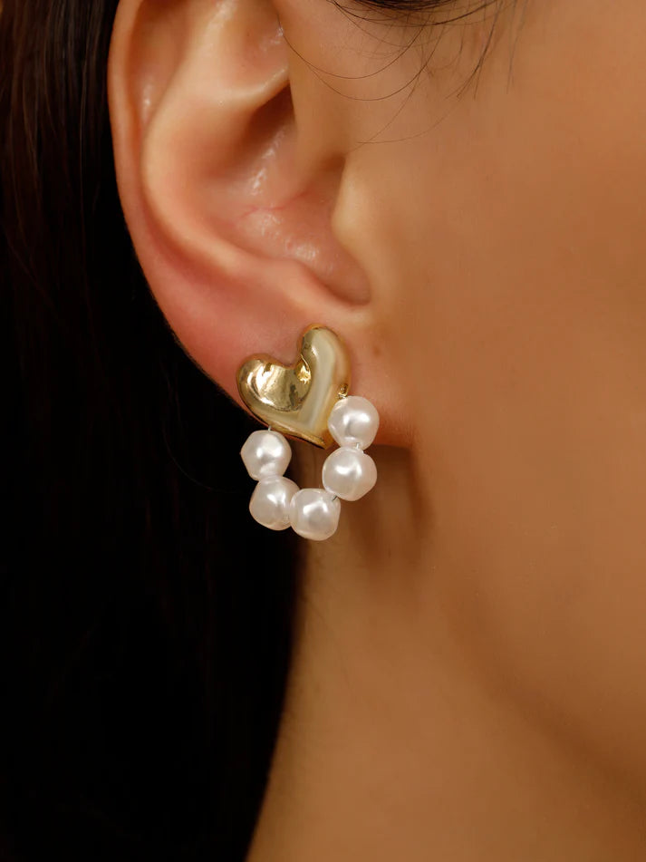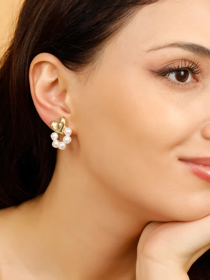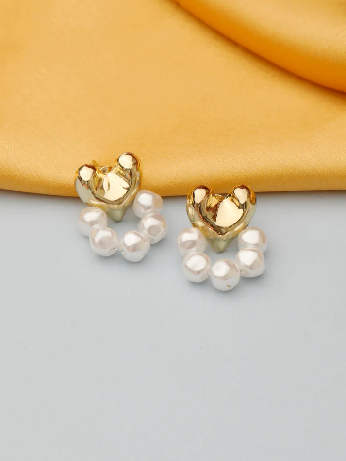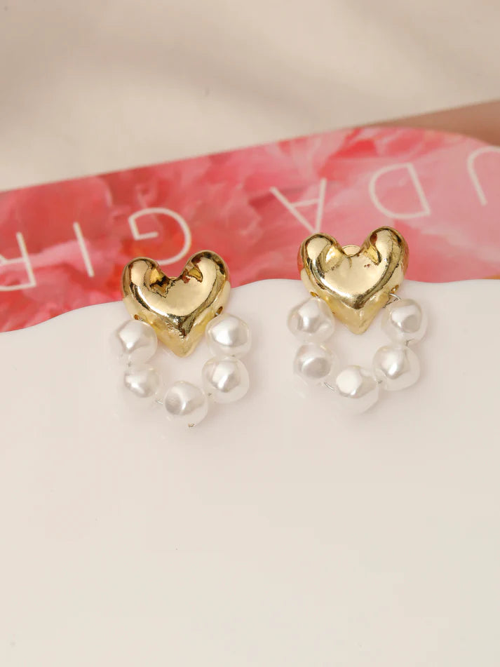 Korean Pearl & Gold Heart Stud Earring