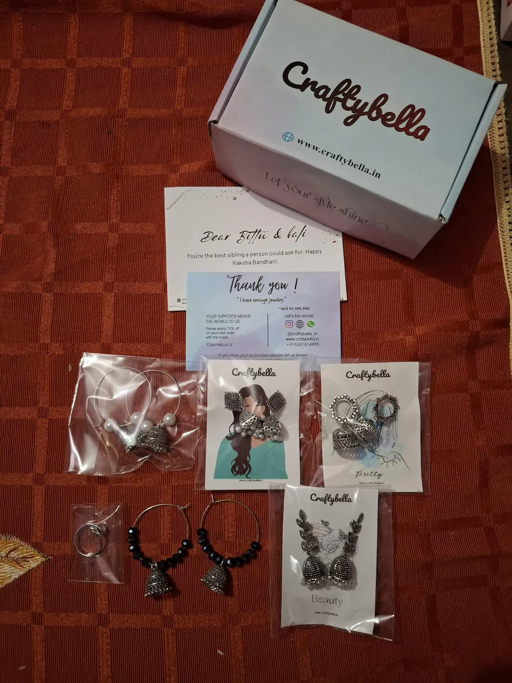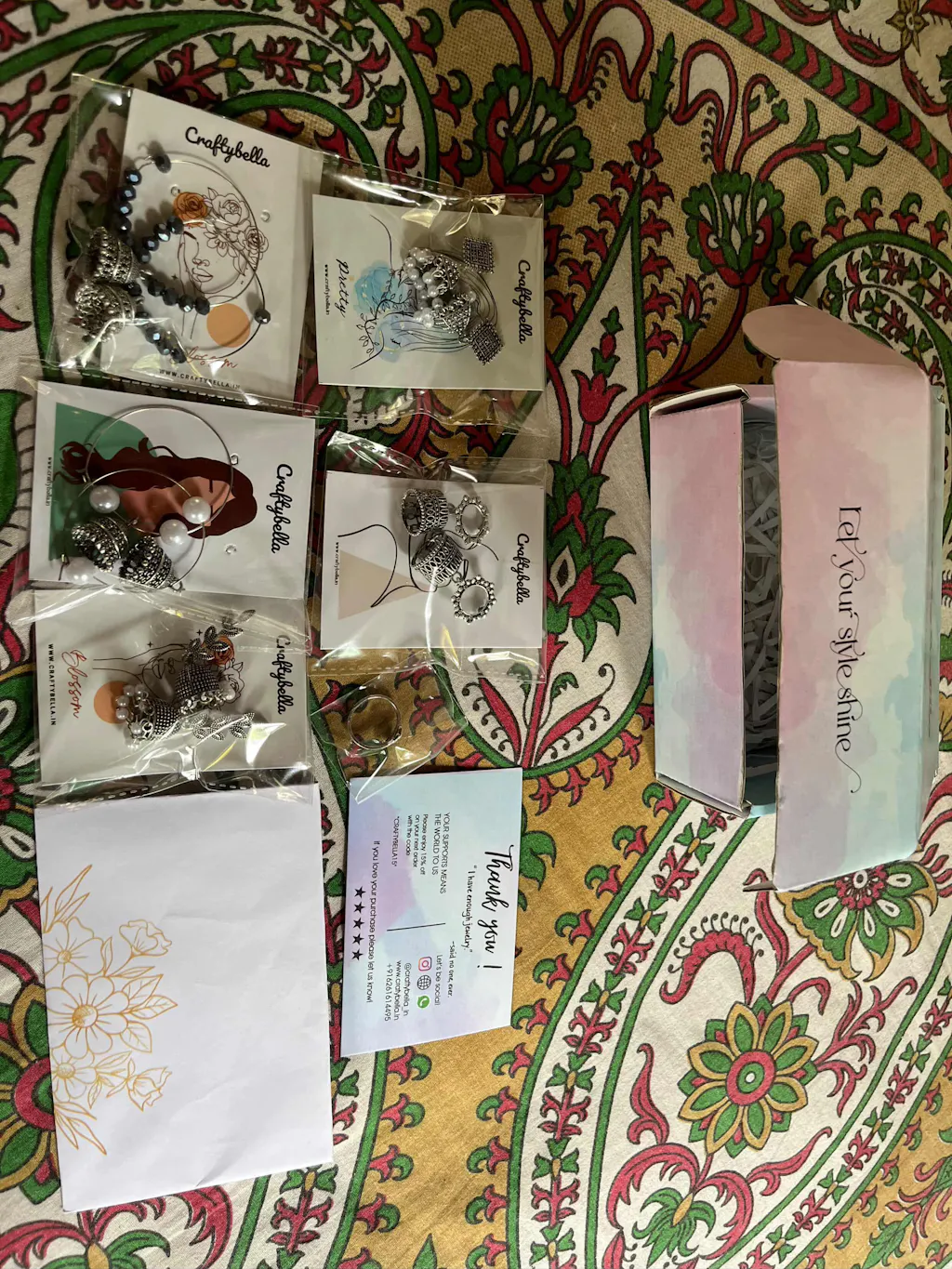 Elevate your style with our stunning 5 Jhumkas and Adjustable Ring Set, complete with a personalized note, all at an affordable price! Crafted with care and attention to detail, each piece exudes elegance and charm, making it the perfect accessory for any outfit.