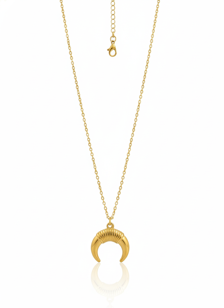 Made with premium gold plating, this celestial-inspired pendant features a beautifully sculpted crescent design that adds a touch of mystery and charm to every outfit.