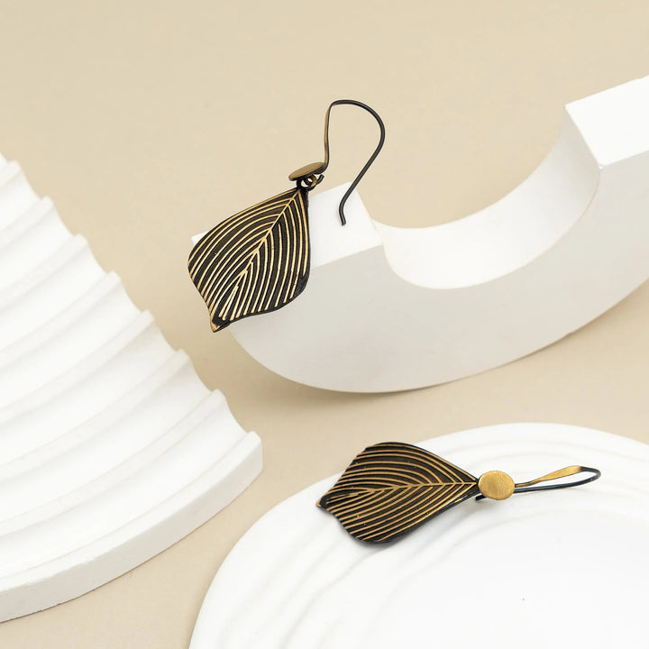These Metallic Leaf Dangle Earrings add an earthy elegance to your everyday style. Designed with a nature-inspired leaf silhouette, the earrings feature intricate engraved detailing and a sleek matte finish, making them both modern and timeless.
