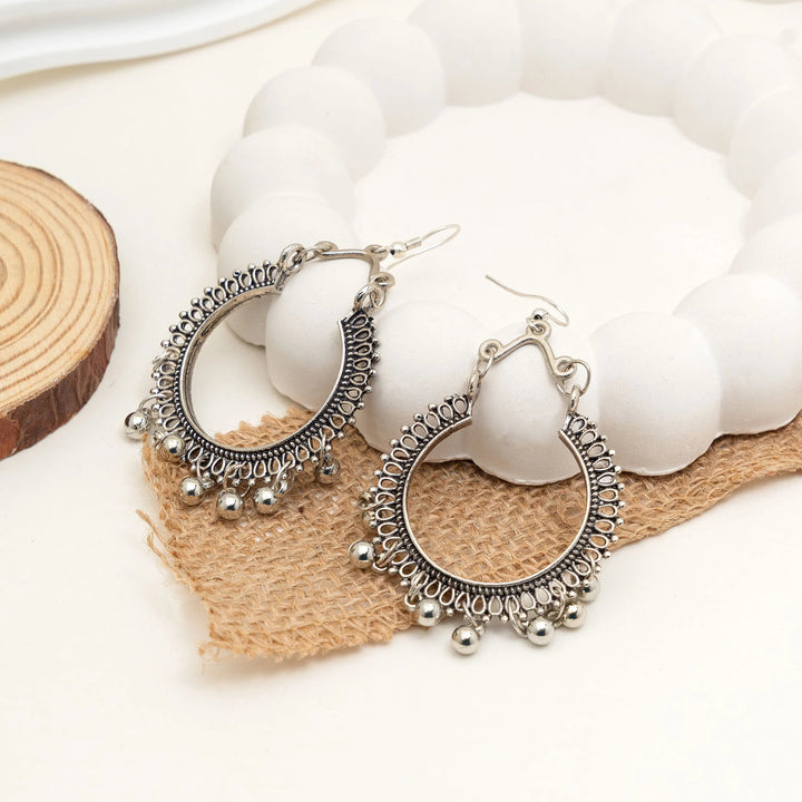 Oxidised Boho Hoop Earrings with Ghungroo Drops