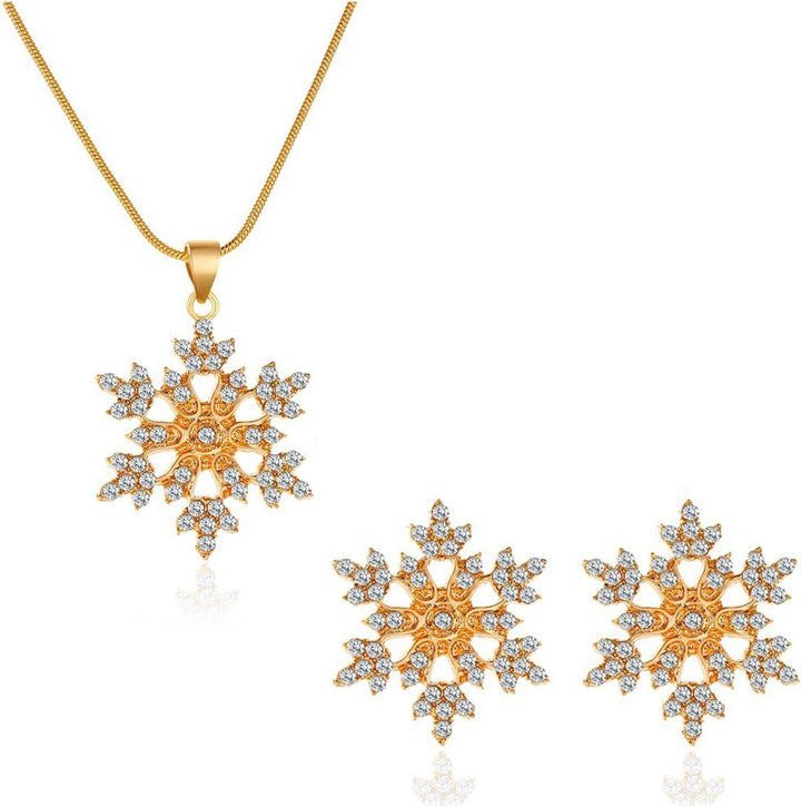 Embrace the beauty of winter with the Snowflake Radiance Set, featuring a dazzling pendant and matching earrings crafted in a stunning snowflake design. Adorned with sparkling cubic zirconia stones, this set captures the brilliance of fresh snowflakes glistening under the light.