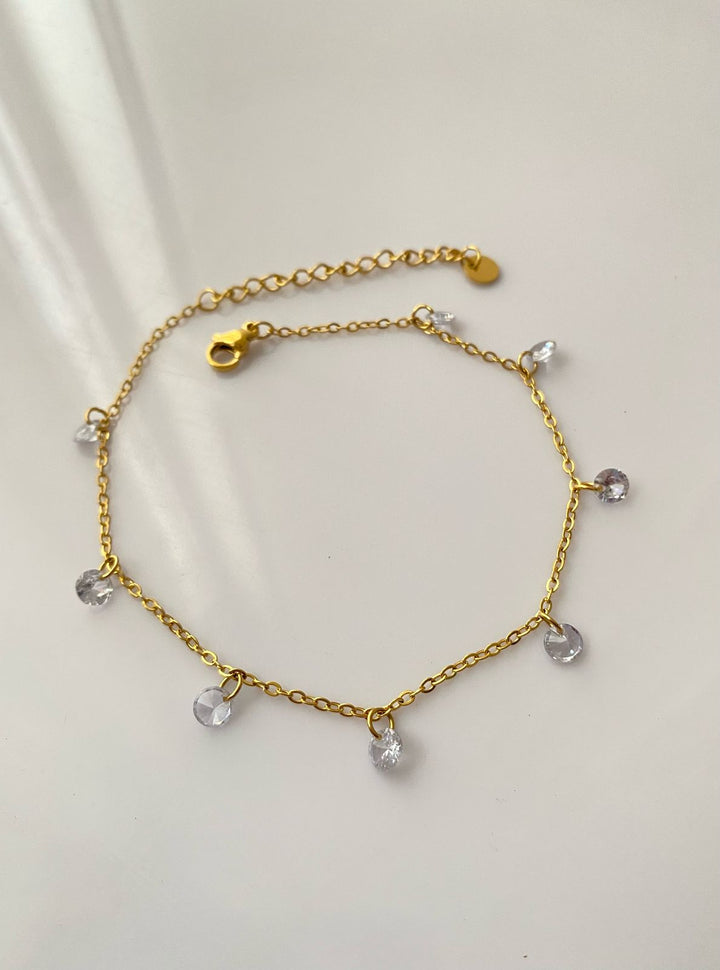 Shine with every step you take in the Starlight Anklet, a delicate piece adorned with sparkling crystal drops that catch the light beautifully. Minimal yet eye-catching, this anklet adds just the right amount of glamour to your everyday look.