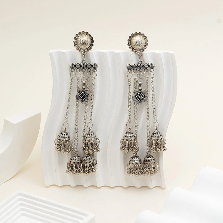 Triple Layer Chain Oxidised Jhumka Earrings